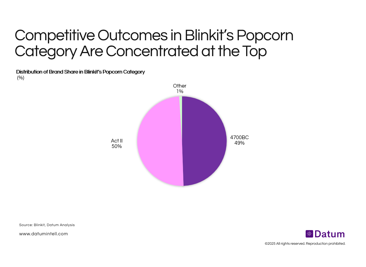 Blinkit’s popcorn category exhibits one of the clearest examples of winner-takes-most dynamics on Indian quick commerce.
