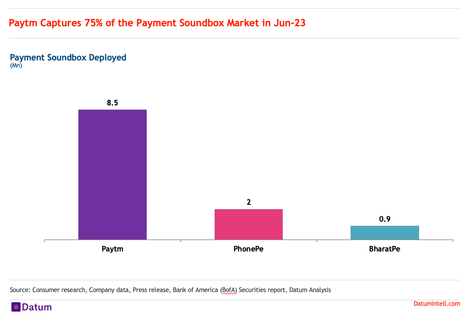 At Datum we estimate this opportunity to be around 45 Million out of which around 11.4 million are already deployed by Paytm, PhonePe and BharatPe.