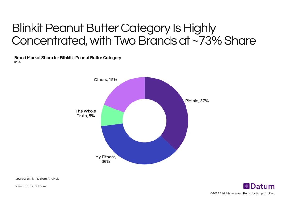Blinkit's peanut butter market has rapidly consolidated around two players and one functional attribute.