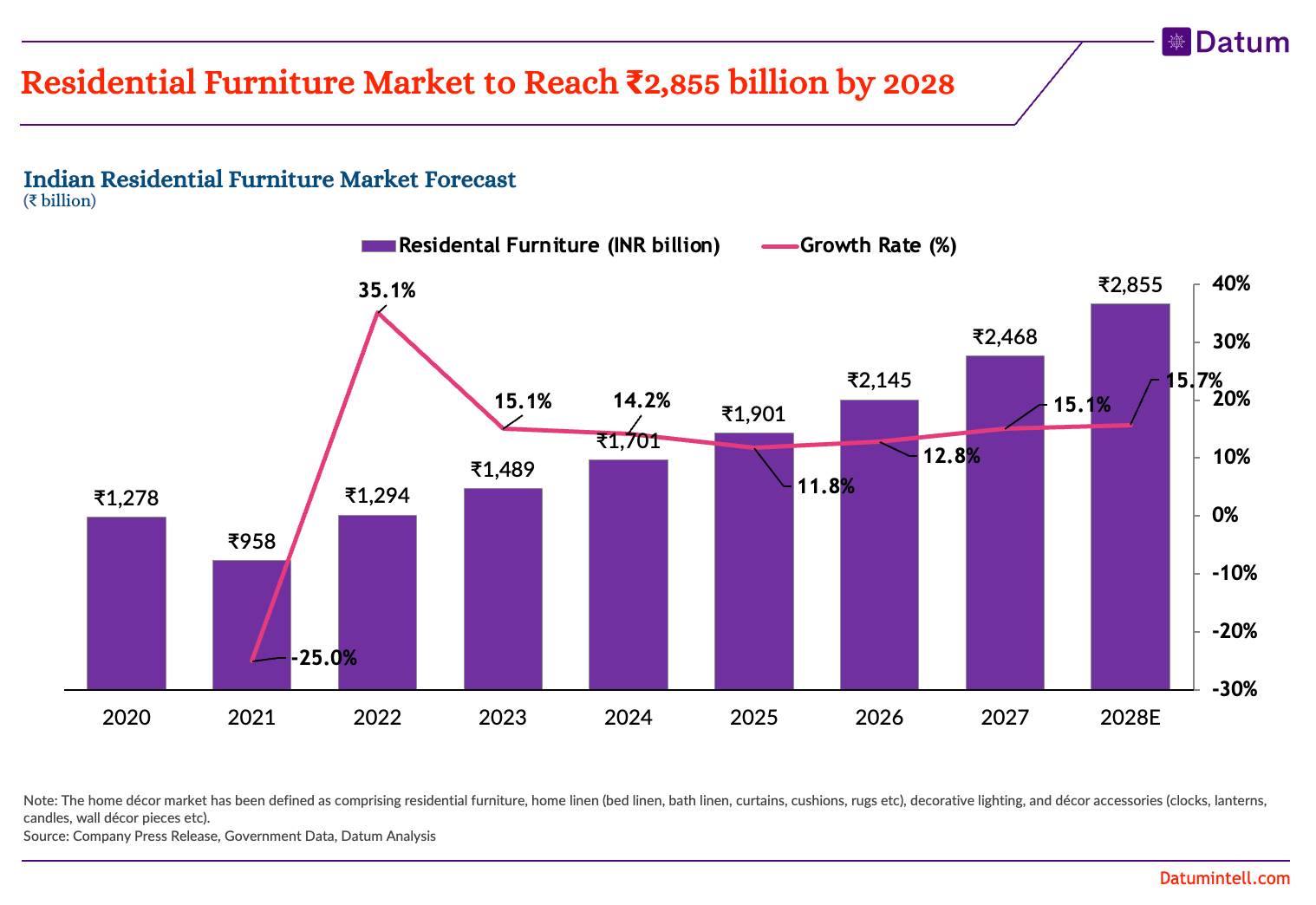 The Indian residential furniture market has been growing steadily over the past decade driven by economic development, rising incomes, and increasing consumer focus on home décor.